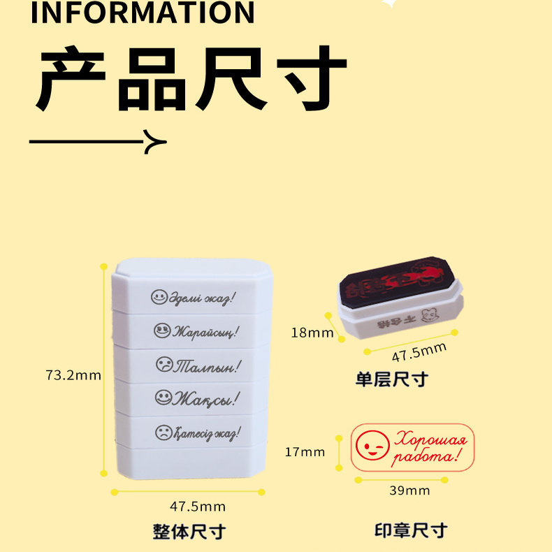 📚 哈萨克语定制五合一印章儿童衣物名字图章定刻文字长条办公光敏章