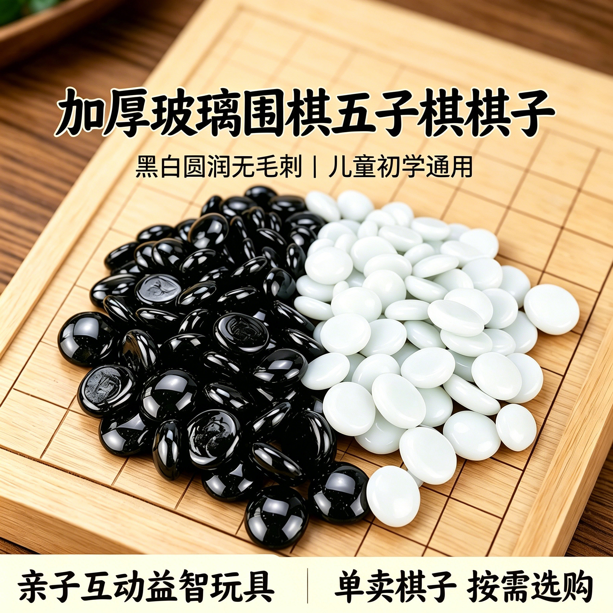 📚 只卖棋子围棋五子棋玻璃棋子黑白子沉甸甸有分量儿童初学益智玩具