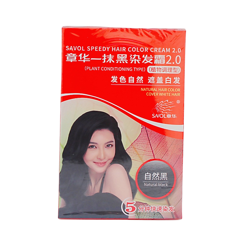 📚 3盒 章华一抹黑染发霜2.0植物调理遮盖白发自然黑快速染在家45ml