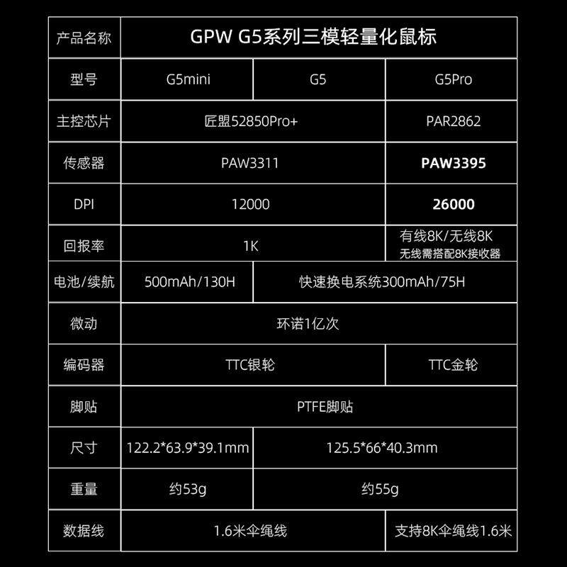 📚 GPW G5电竞游戏鼠标无线三模轻量化PAW3311电脑狗屁王四代gpw4