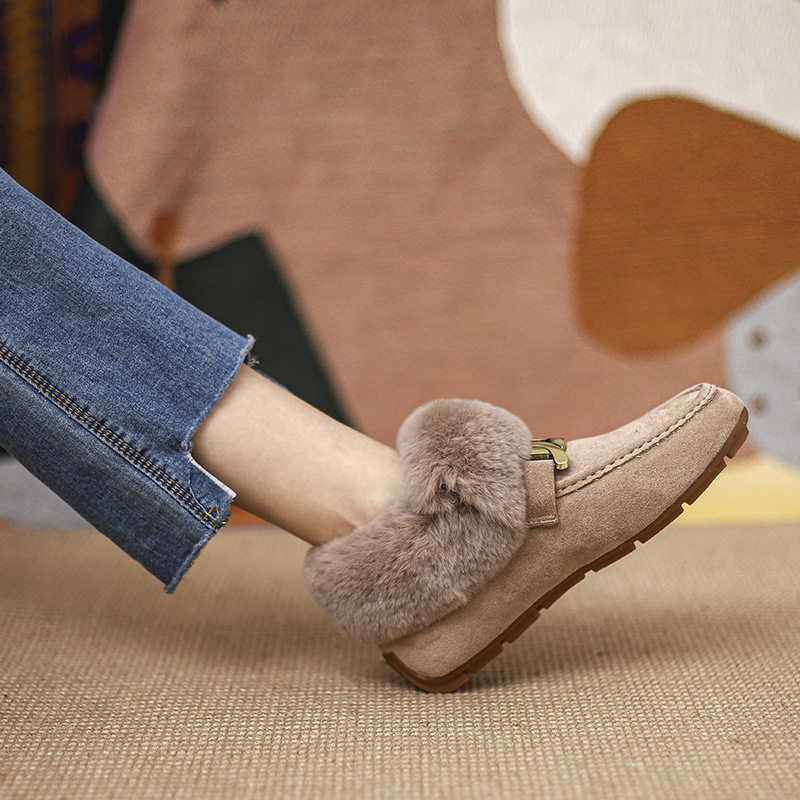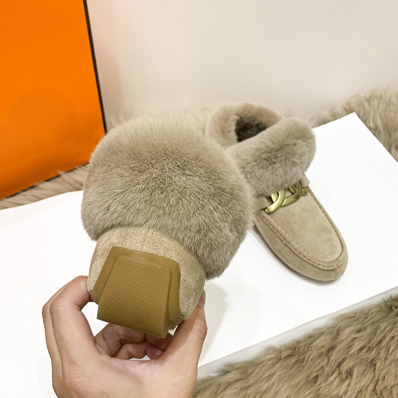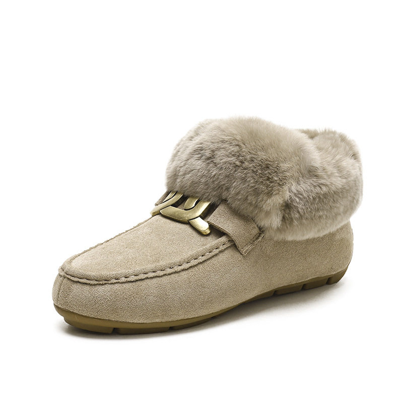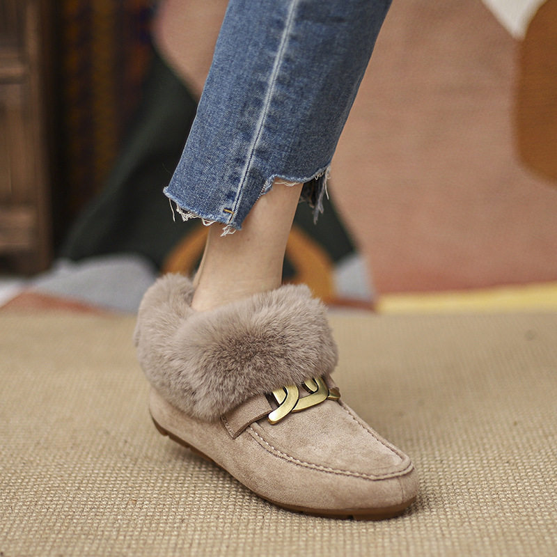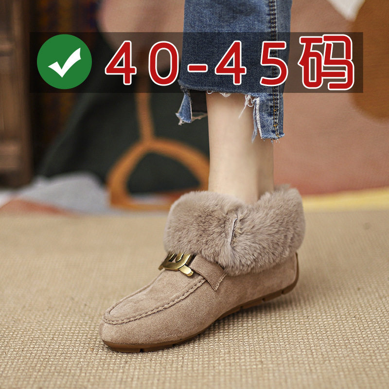 📚 大码雪地靴女40到45码厚底防滑保暧棉鞋加绒兔毛毛鞋豆豆鞋43 44