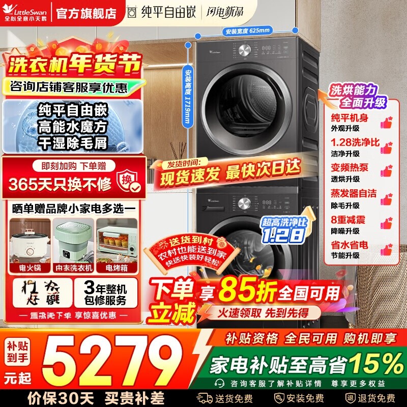 📚 新款小天鹅洗烘套装水魔方洗衣机热泵洗衣机烘干机组合旗舰店628T