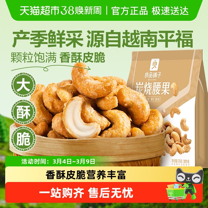 📚 良品铺子炭烧腰果每日坚果干果零食腰果仁特产休闲食品小包装