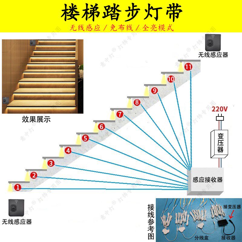 📚 楼梯踏步感应灯带无线感应人体智能逐步亮台阶灯无光斑可明装定制
