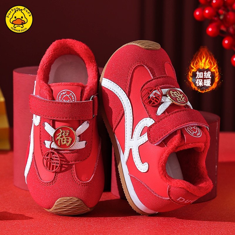 👔 新款本命年男童鞋,冬季新款儿童皮面二棉运动鞋,男孩红色加绒阿甘鞋,券后价仅需26.8!👣
