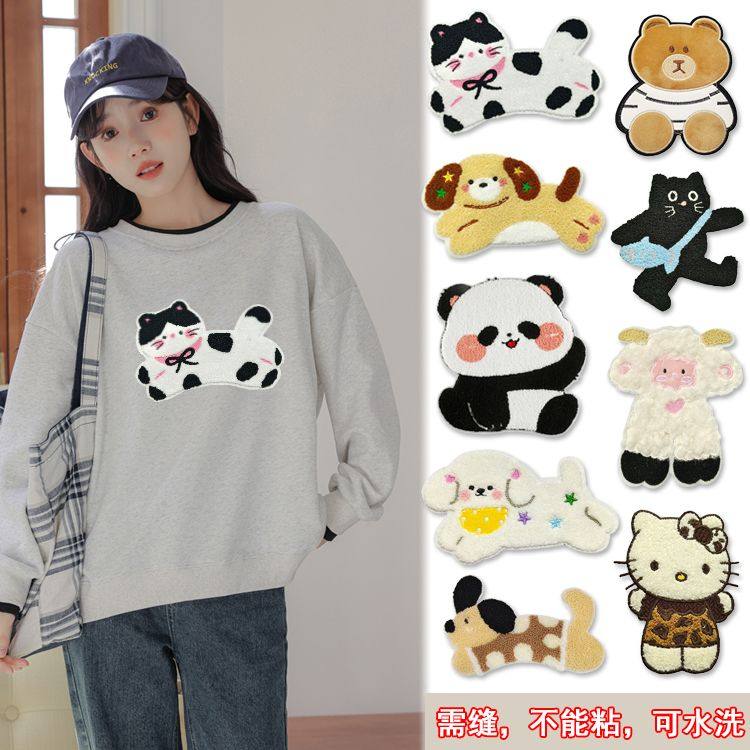 📚 缝在衣服上的装饰品缝制新款毛巾绣卡通图案布贴衣服装饰羽绒服卫