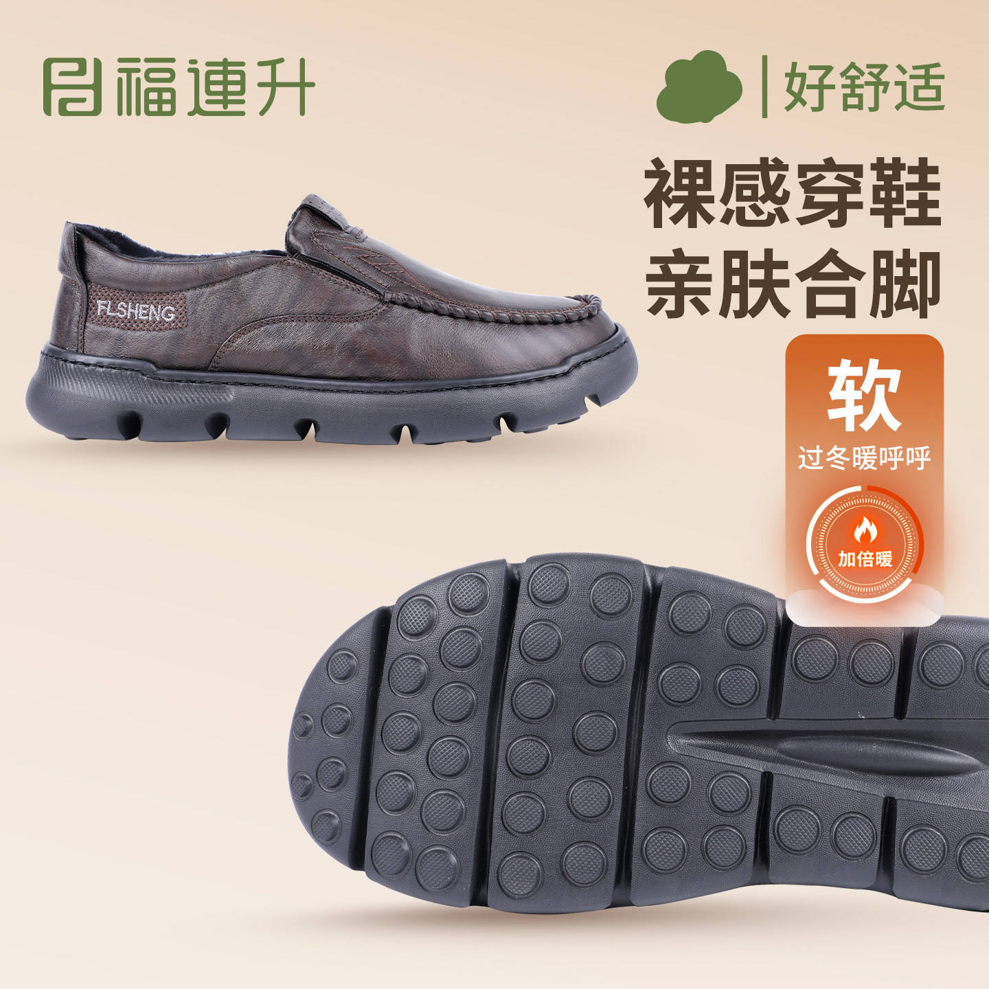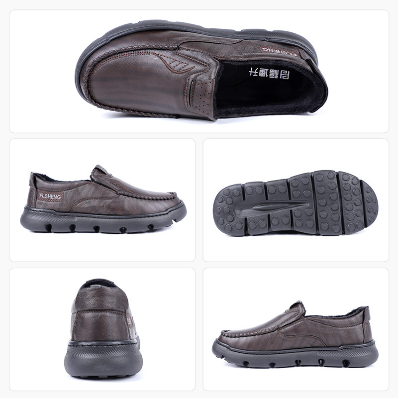🔥"福连升2025冬防滑耐磨软底舒适缓震中年休闲商务加绒软皮鞋,温暖爸爸的时尚之选👠"