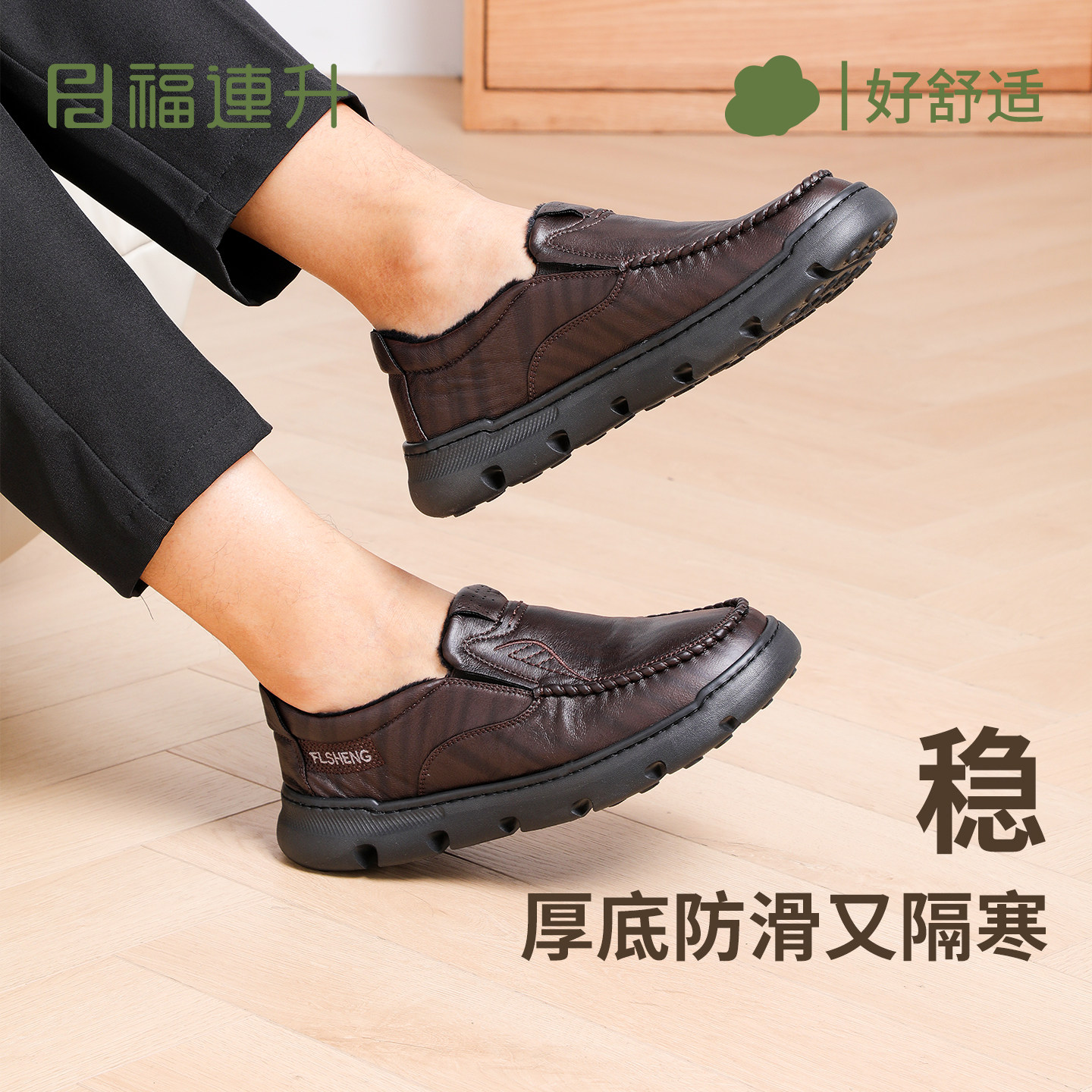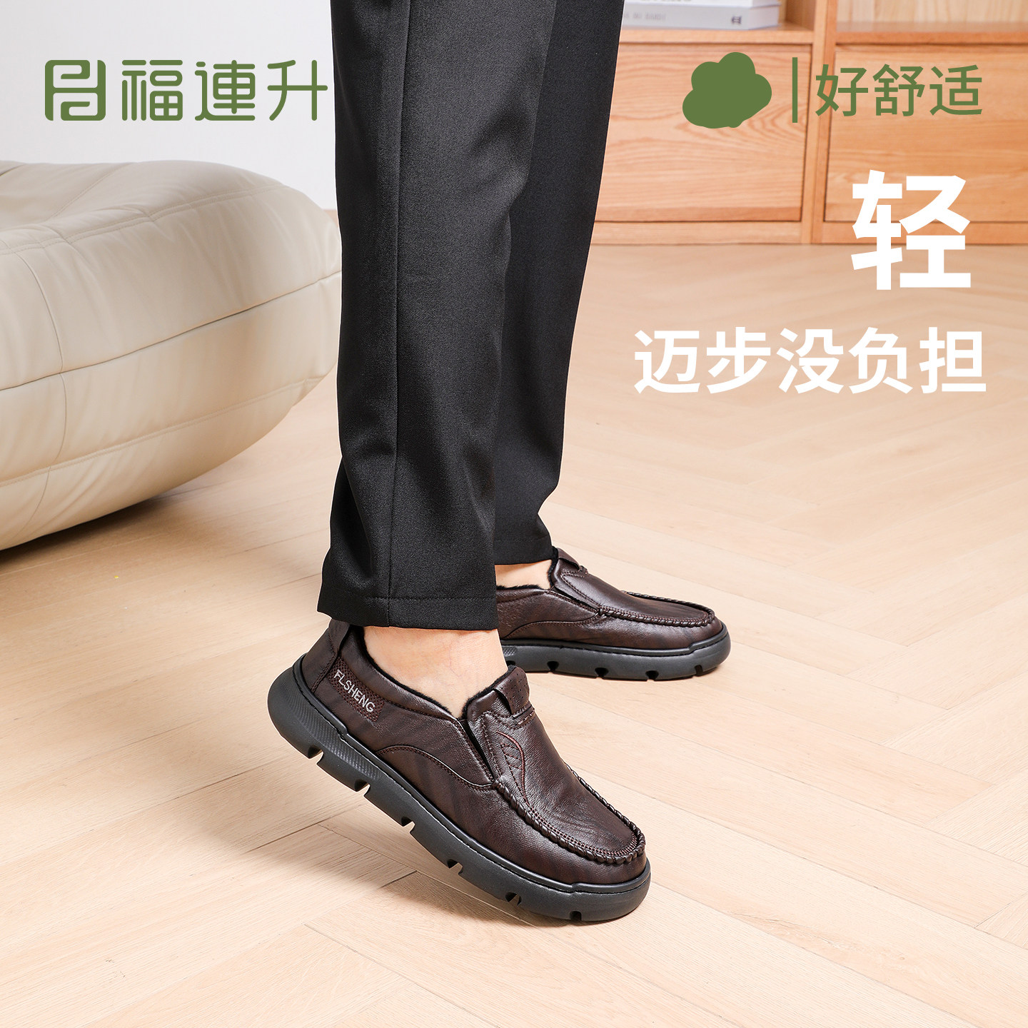 #福连升 #冬防滑耐磨 #软底舒适缓震 #中年休闲商务 #加绒软皮鞋 #时尚好物 #券后价低至193