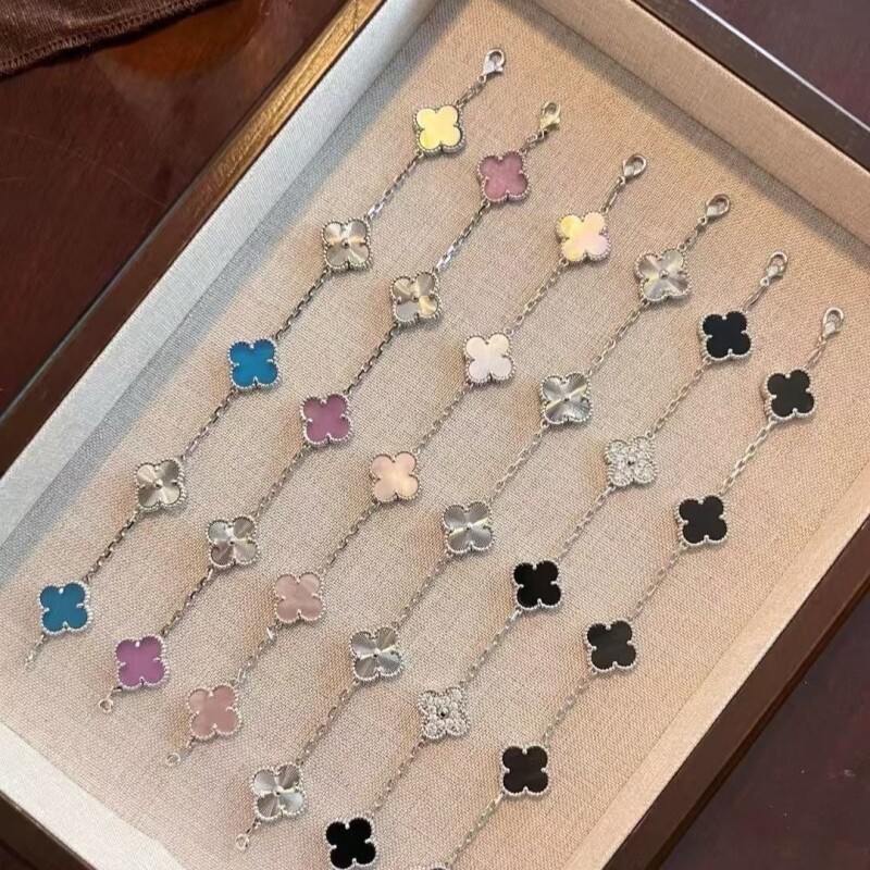 📚 四叶草五花手链18K金黄红玉髓白贝母玛瑙镭射玫瑰金女黄金紫玉髓