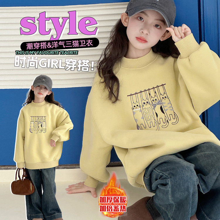 📚 女童加厚加绒衫卫衣秋冬装新款中大童半高领保暖初中生学生内搭潮