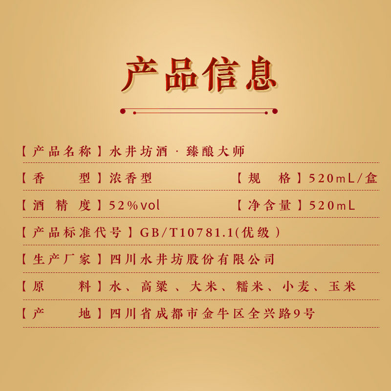 📚 【梁朝伟推荐白酒】水井坊臻酿八号大师款52度520ml*4瓶纯粮白酒