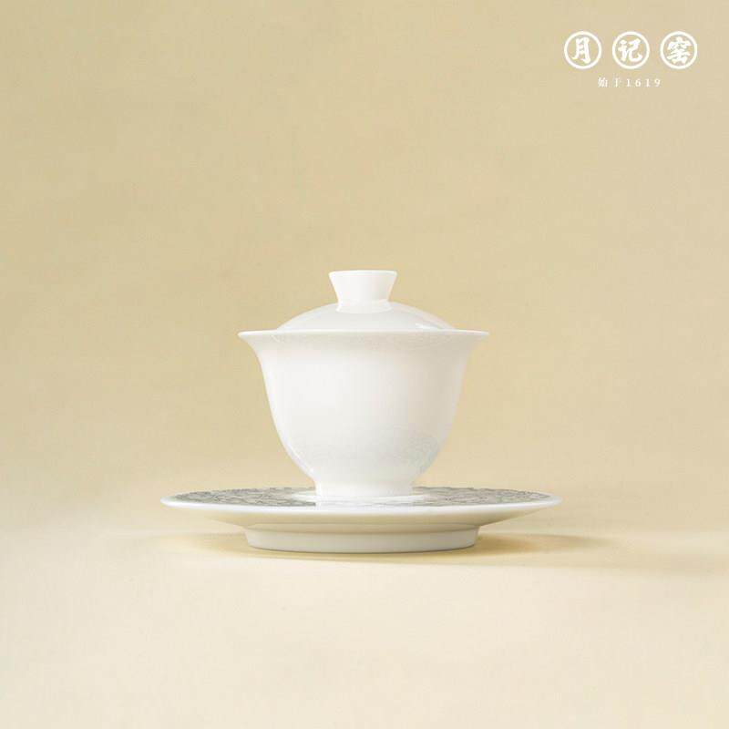 📚 月记窑 “平步青云”羊脂玉瓷三才盖碗