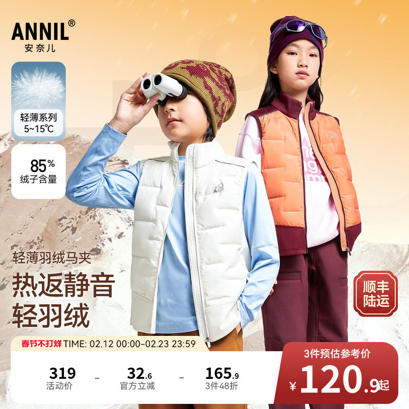 📚 安奈儿童装男童女童立领轻薄羽绒马甲冬休闲拼接保暖三防