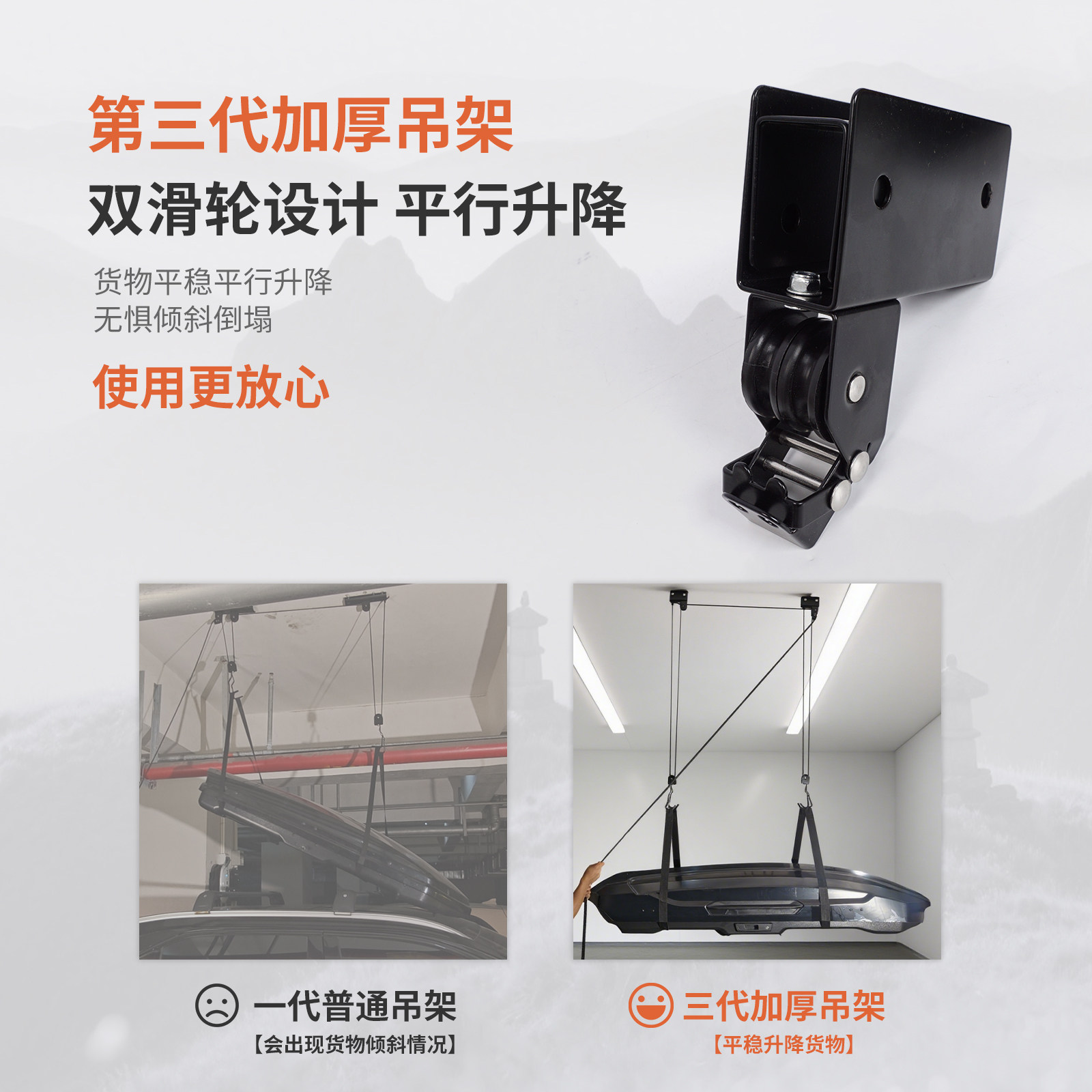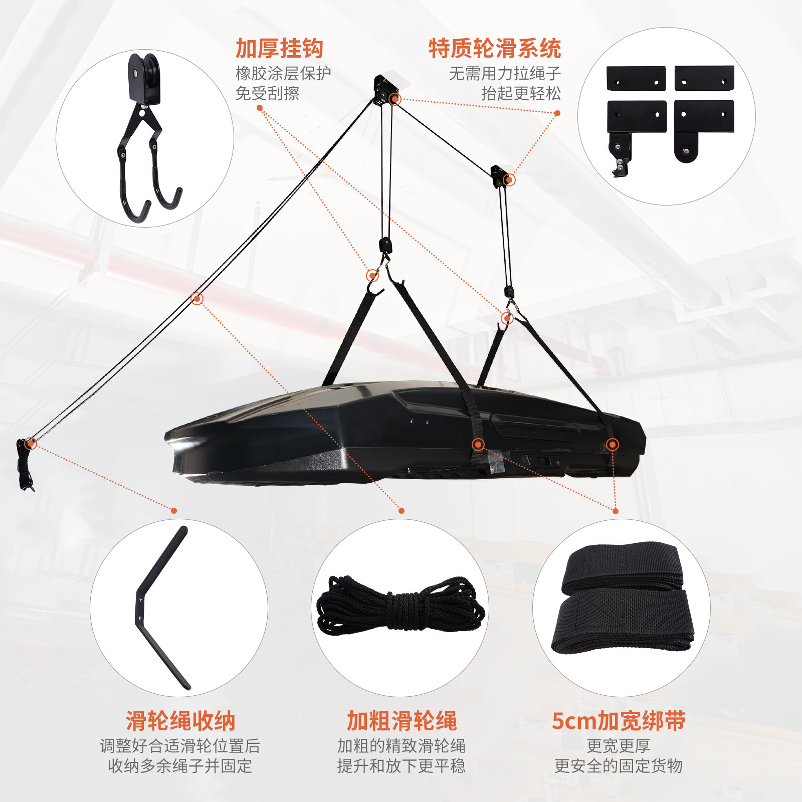 📚 适用车顶行李箱吊具车顶平台升降吊装架滑轮吊皮划艇自行车吊架