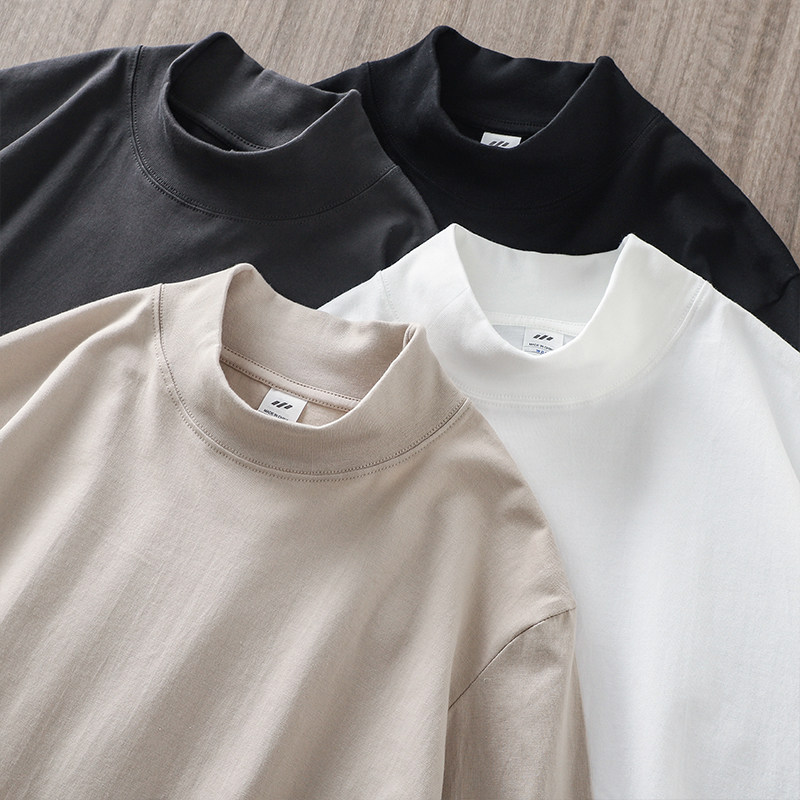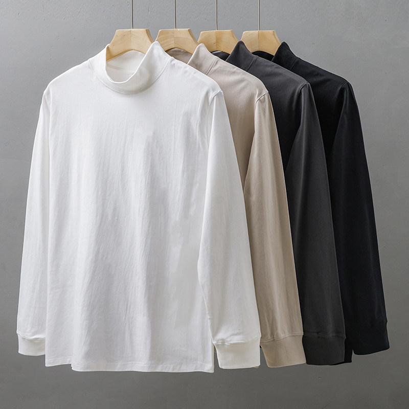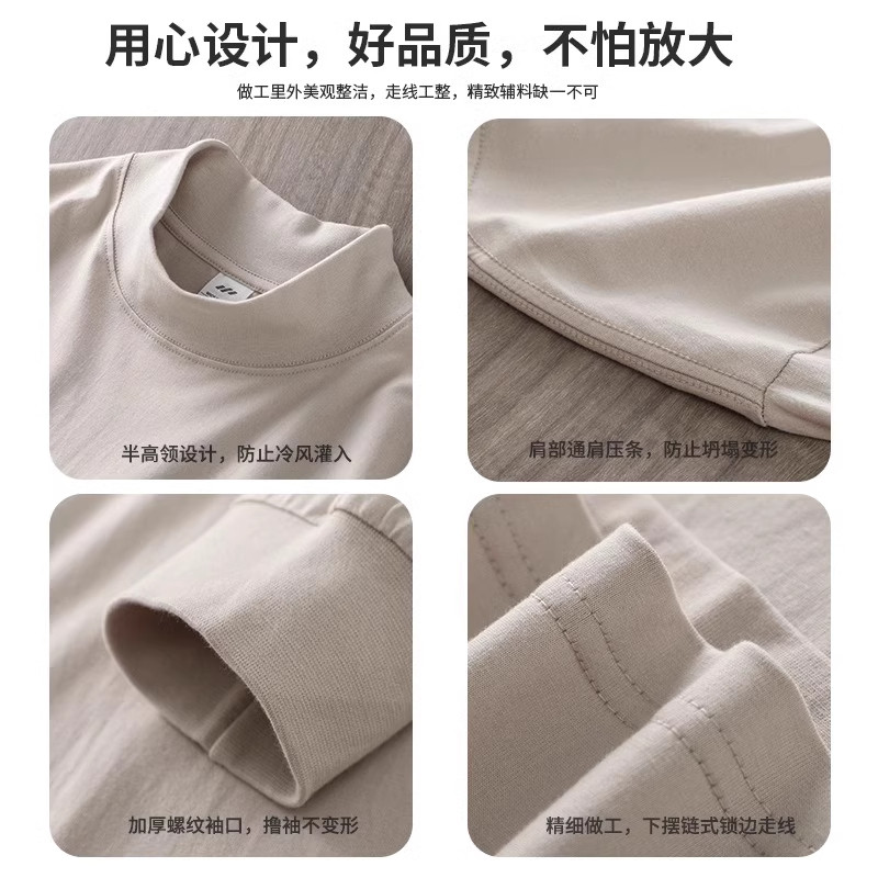 📚 280G重磅纯棉打底衫男春秋款宽松纯色中领卫衣白色半高领长袖t恤