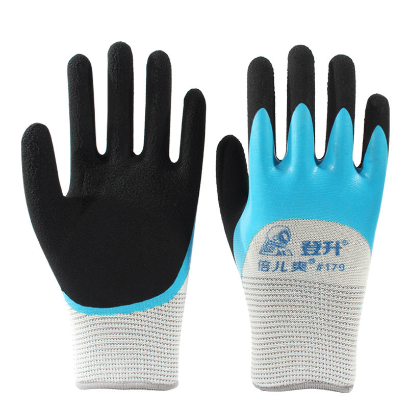 📚 正品登升#179倍儿爽劳保手套浸胶防滑乳胶耐磨透气发泡王劳动工作