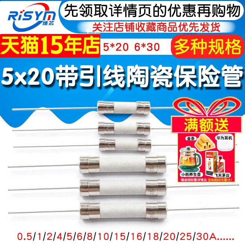 📚 陶瓷保险管带引脚5*20快断2A/3A/5A/8A/10A/12A/15A/20A/25A/30A