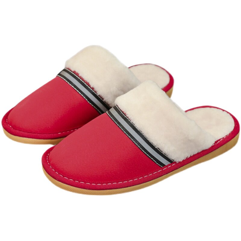 📚 秋冬季皮拖鞋女居家防水冬天保暖男毛绒绒棉拖鞋情侣包头卧室防滑