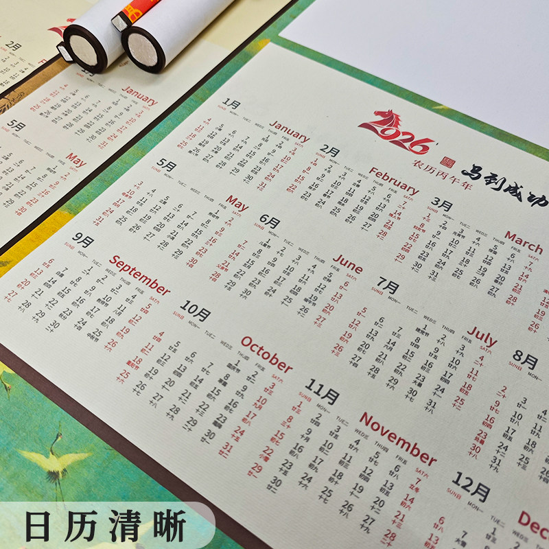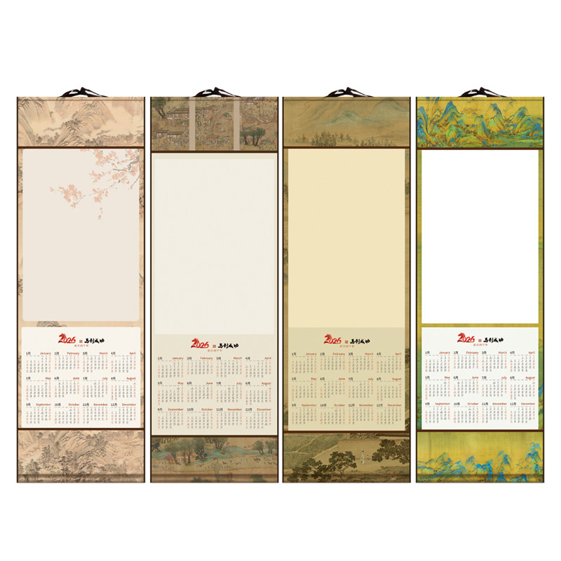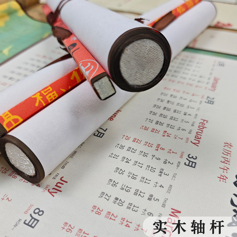 📚 锦墨堂2026年新款国风文创日历挂轴宣纸免装裱手工书法国画创作作品宣纸半熟生宣空白毛笔字新年福字挂历手卷