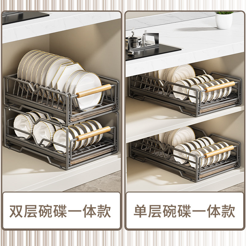 📚 厨房橱柜内置物架碗碟收纳架抽屉式抽拉篮碗篮沥水碗架碗盘碗柜子