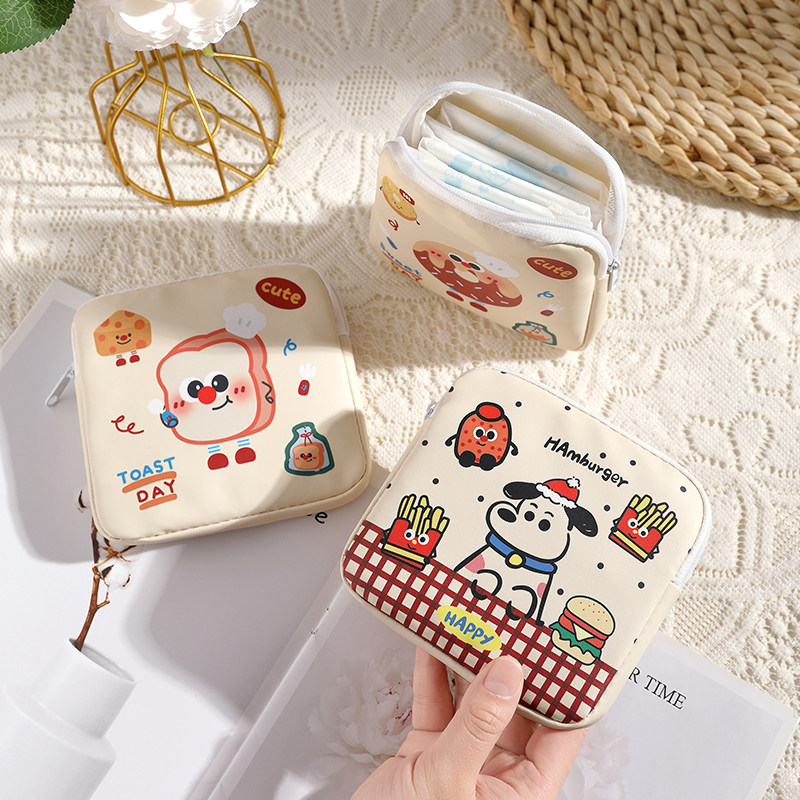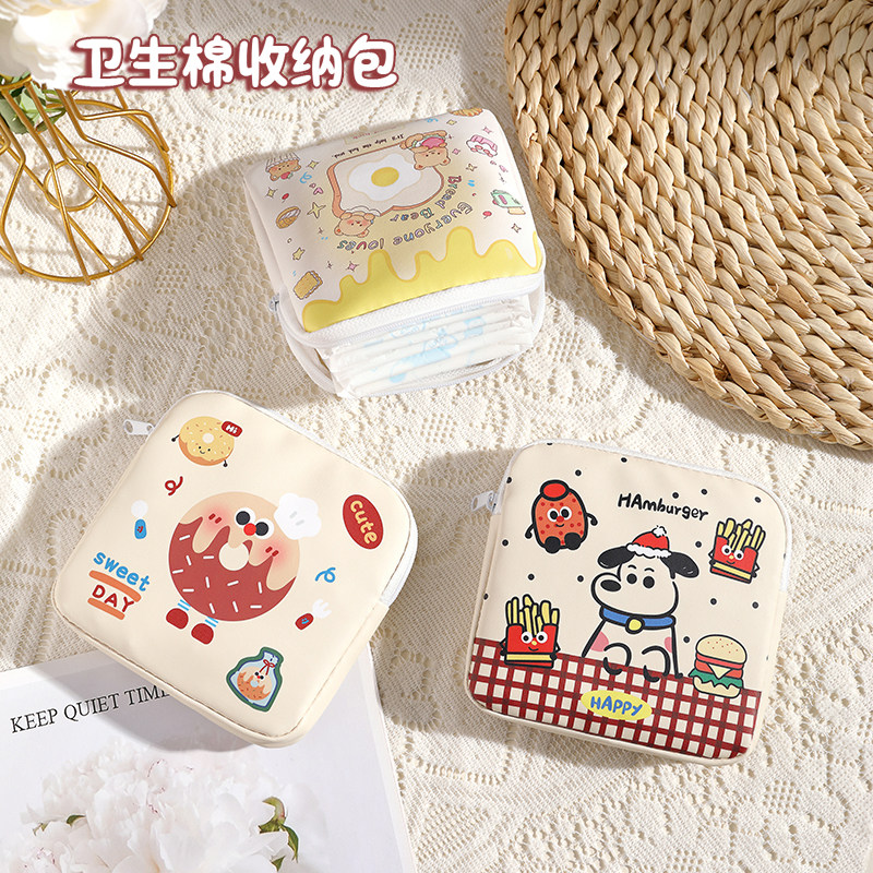 📚 卡通卫生巾收纳包学生便携可爱月事包大容量薯条小狗姨妈巾收纳袋