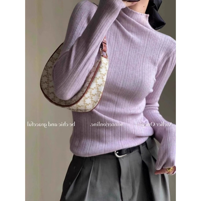 🎉新品蓝色半高领针织打底衫来啦!💙这款新品真的是让我彻底种草了!高级感十足,修身又柔软,简直是秋冬的绝美内搭神器!