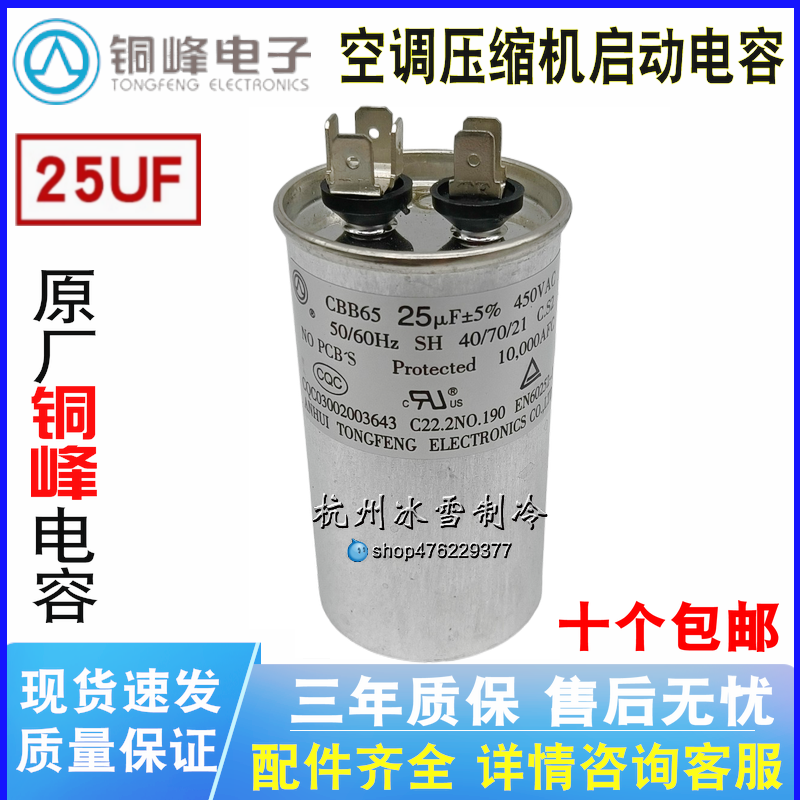 📚 CBB65 10/15/20/25/30/35/40UF VF 450V 空调压缩机电容 铜峰牌
