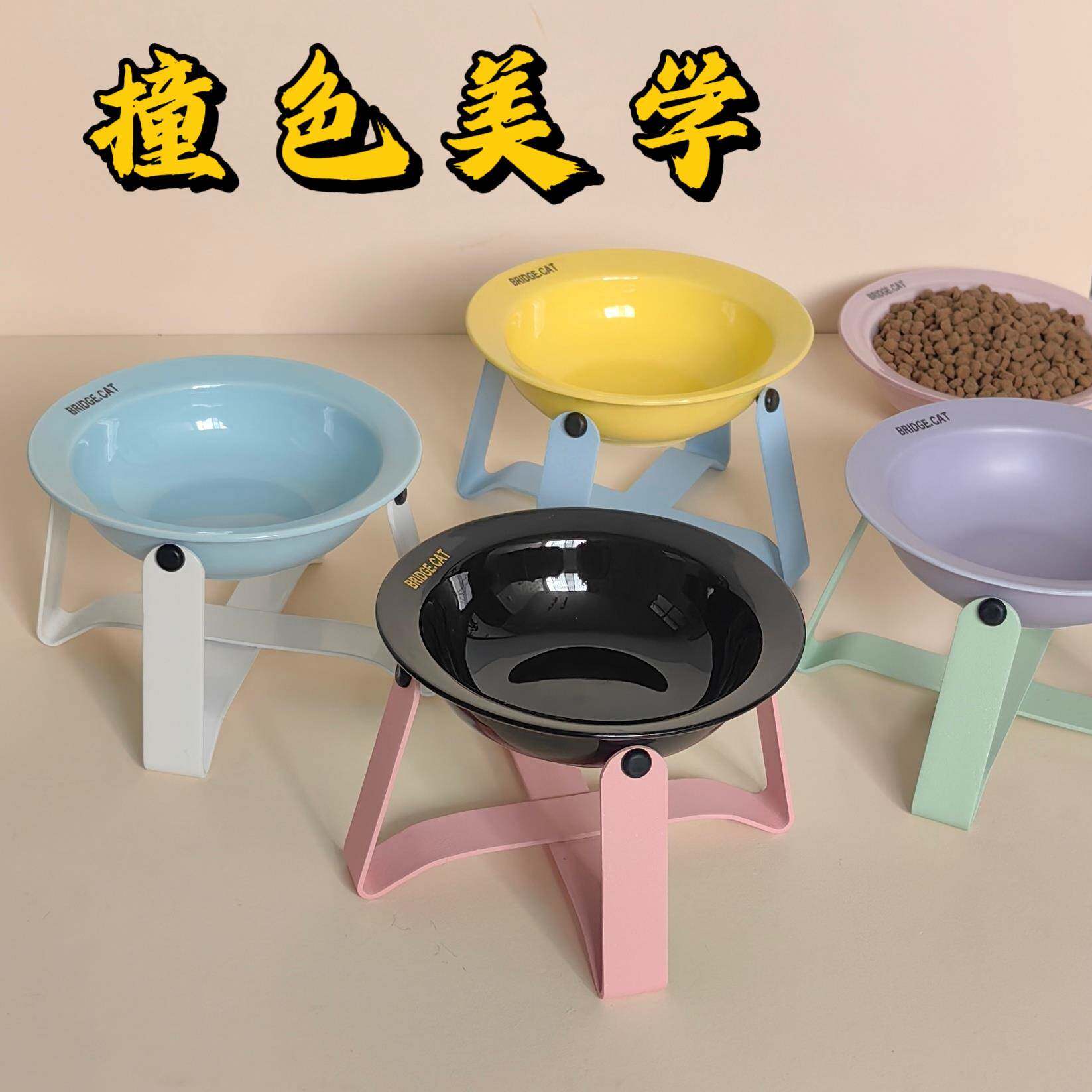 📚 韩国bridge.cat陶瓷飞碟猫碗狗碗架护颈防打翻宠物碗罐头喝水碗