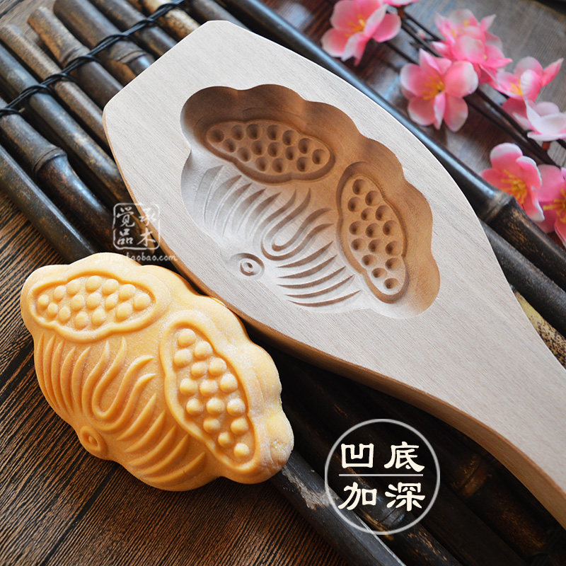 📚 凹底福字莲蓬花样蒸馒头元宝面食年糕饽饽卡家用木质烘焙模具150g