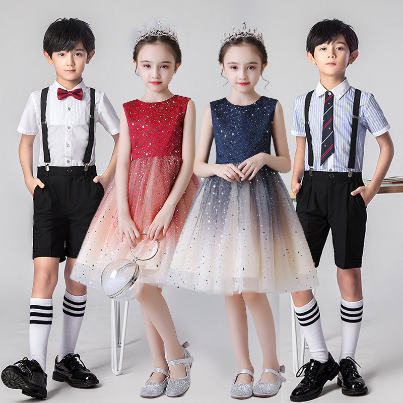 📚 六一儿童演出服小学生大合唱女童公主礼服舞蹈裙诗歌朗诵表演服装