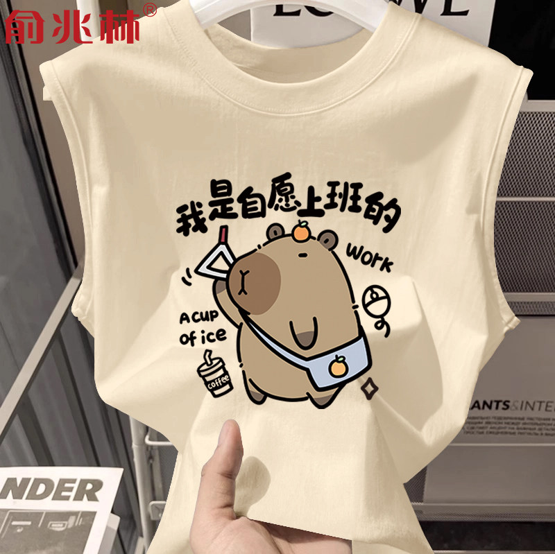 📚 趣味卡通小猫少管闲事多睡觉背心男夏季青少年宽松休闲无袖t恤潮