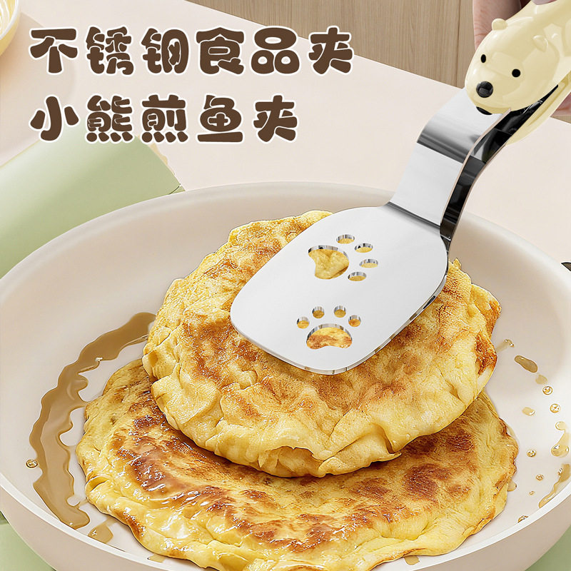 📚 多功能防烫隔热小熊煎鱼夹食物夹家用翻面煎铲夹子二合一煎鱼神器
