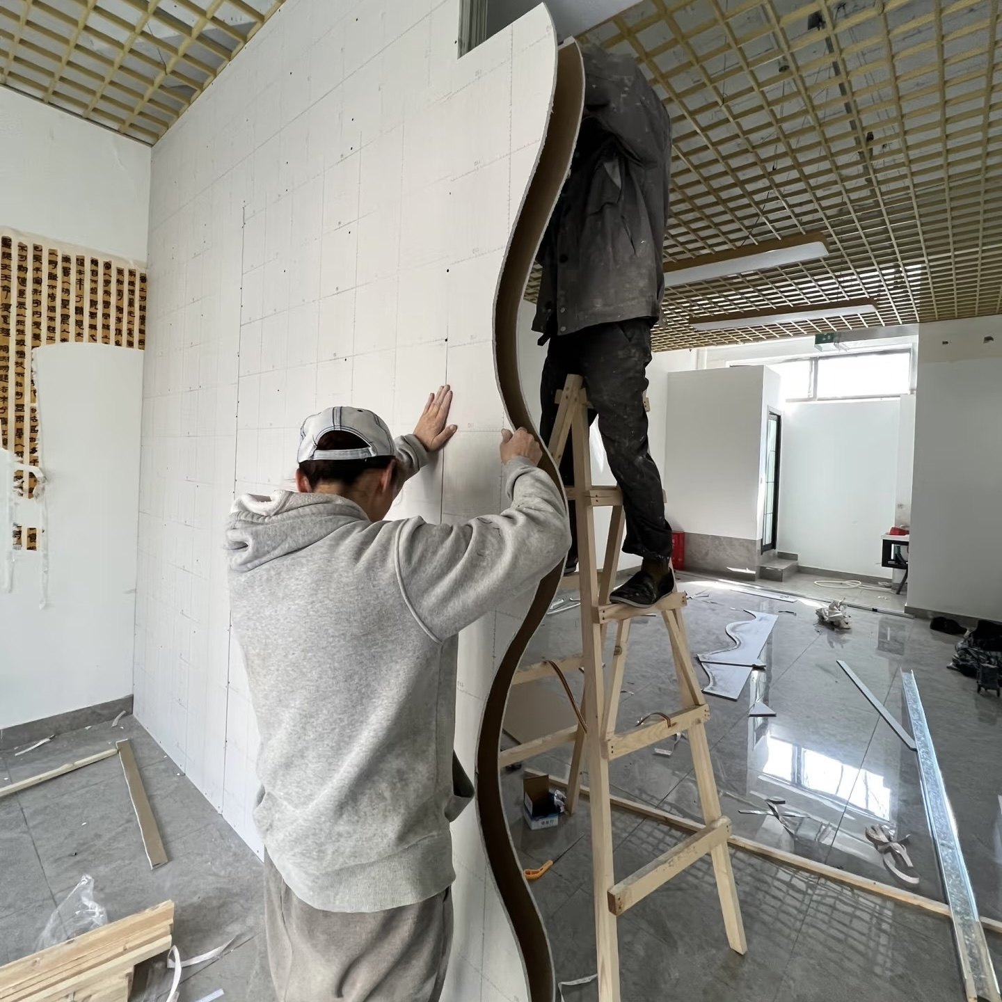 📣先说说这个隔断墙的造型设计,简约大气,线条流畅,绝对是办公室装修的新选择。轻钢龙骨与石膏板结合,不仅坚固耐用,还能轻松打造出各种造型,满足不同空间的需求。