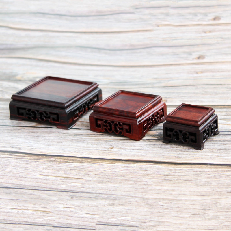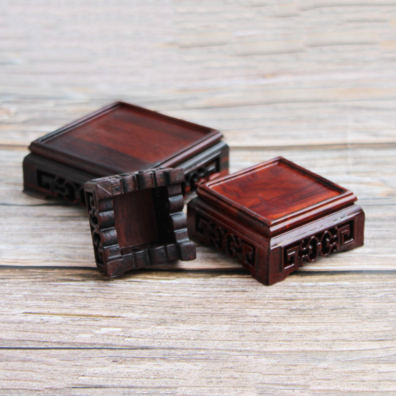 📚 红木木雕实木底座大红酸枝工艺玉石印章核雕底座正方形摆件底座