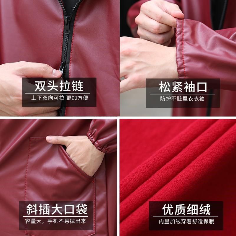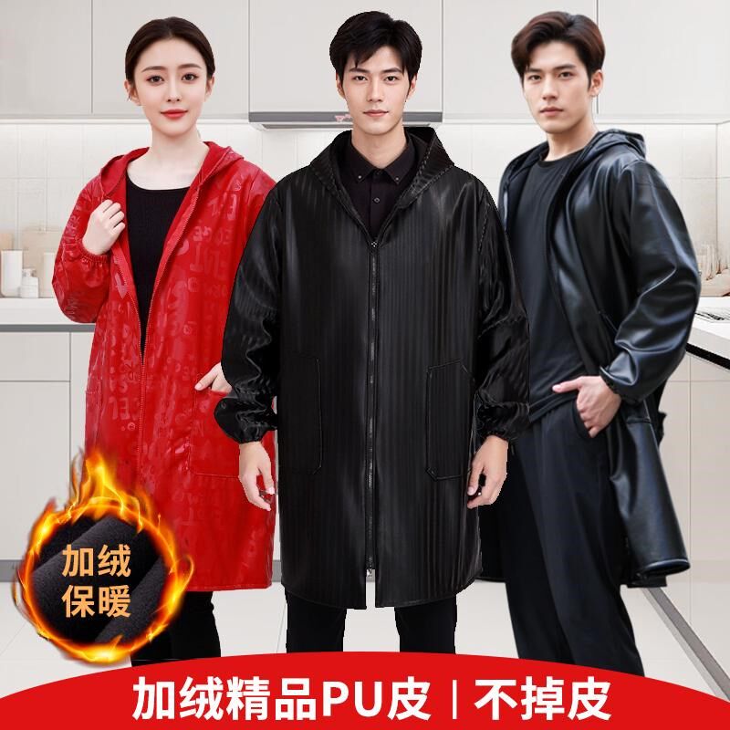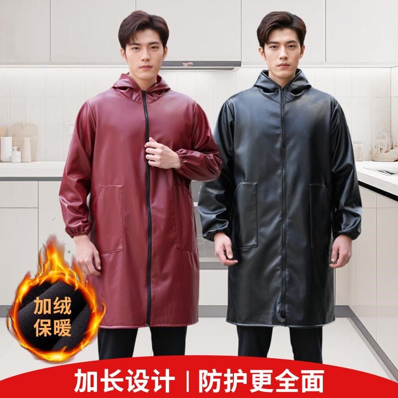 📚 加绒PU皮革加厚罩衣防水防油厨房皮衣有袖围裙菜场干活外套工作服