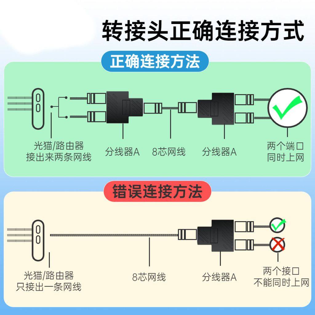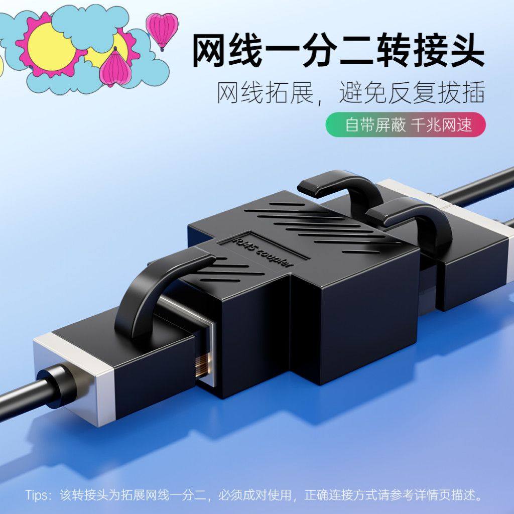 📚 品源胜分线器一分二千兆网络RJ45网口分配器1进2出同时上网转接头