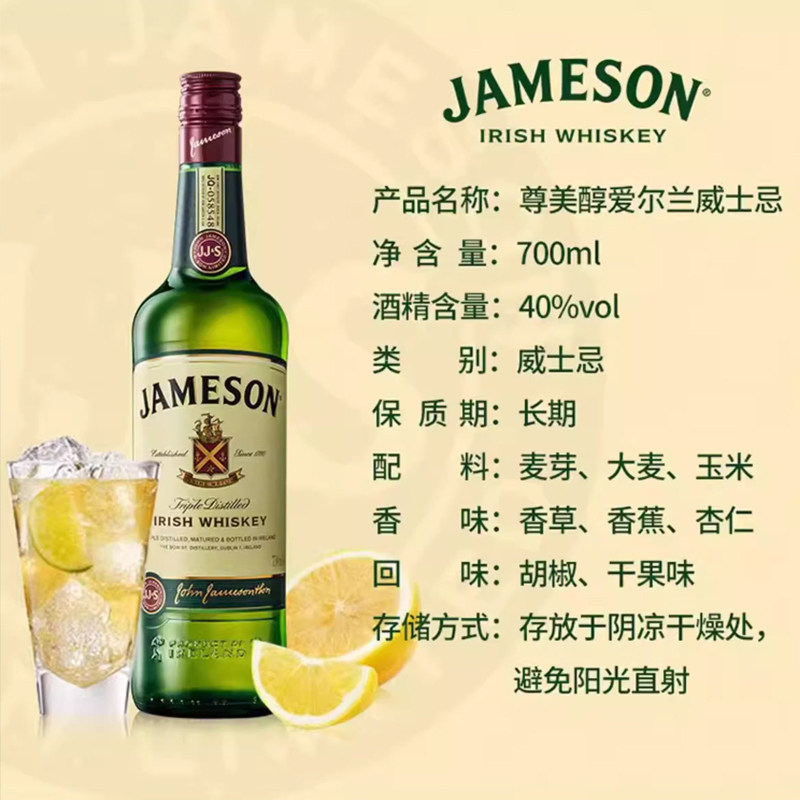 📚 【国行】尊美醇威士忌JAMESON爱尔兰洋酒占美神WHISKEY进口洋酒
