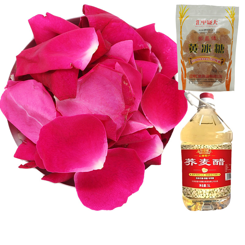 📚 【玫瑰醋组合套餐】云南可食用墨红滇红玫瑰花瓣花茶醋酱酒包邮