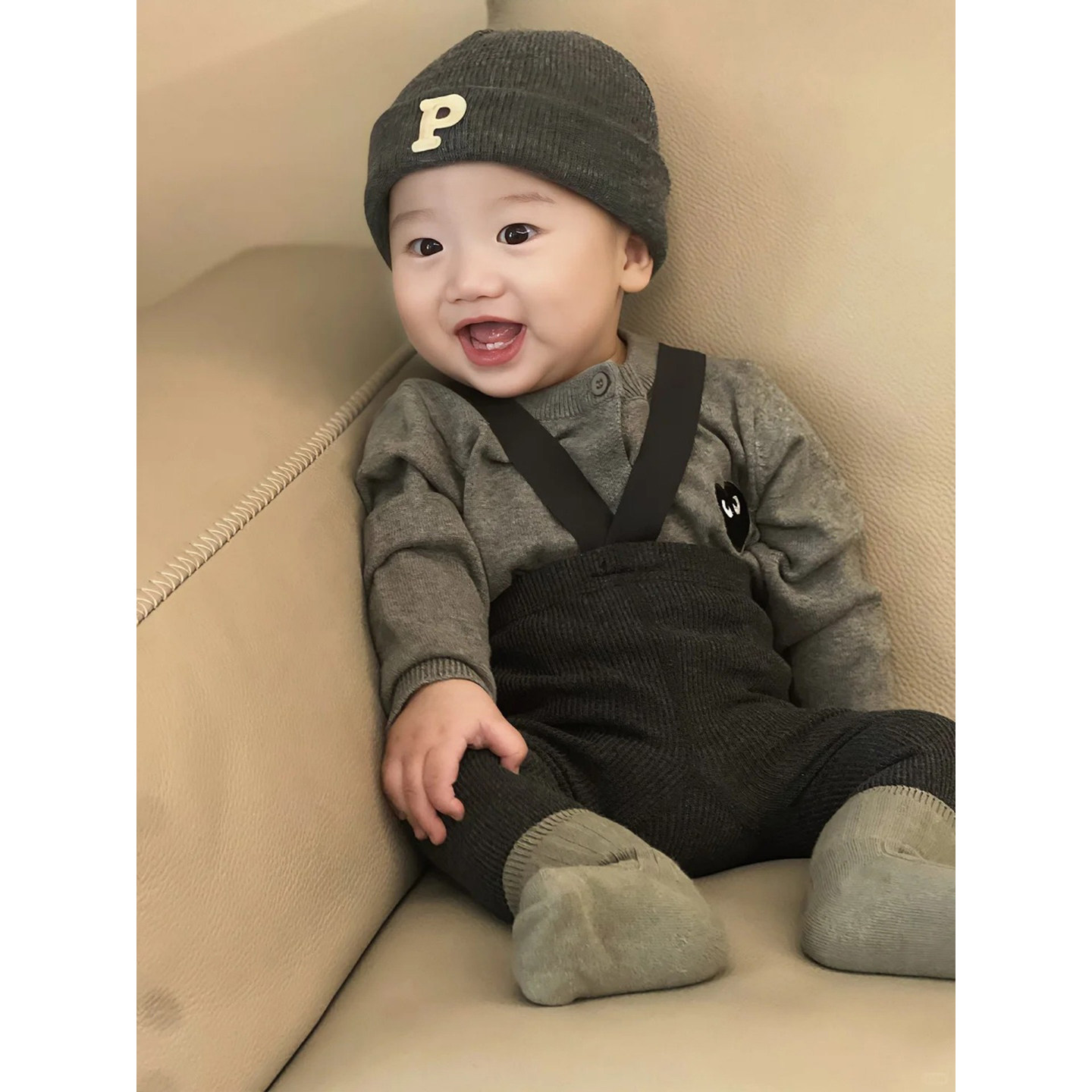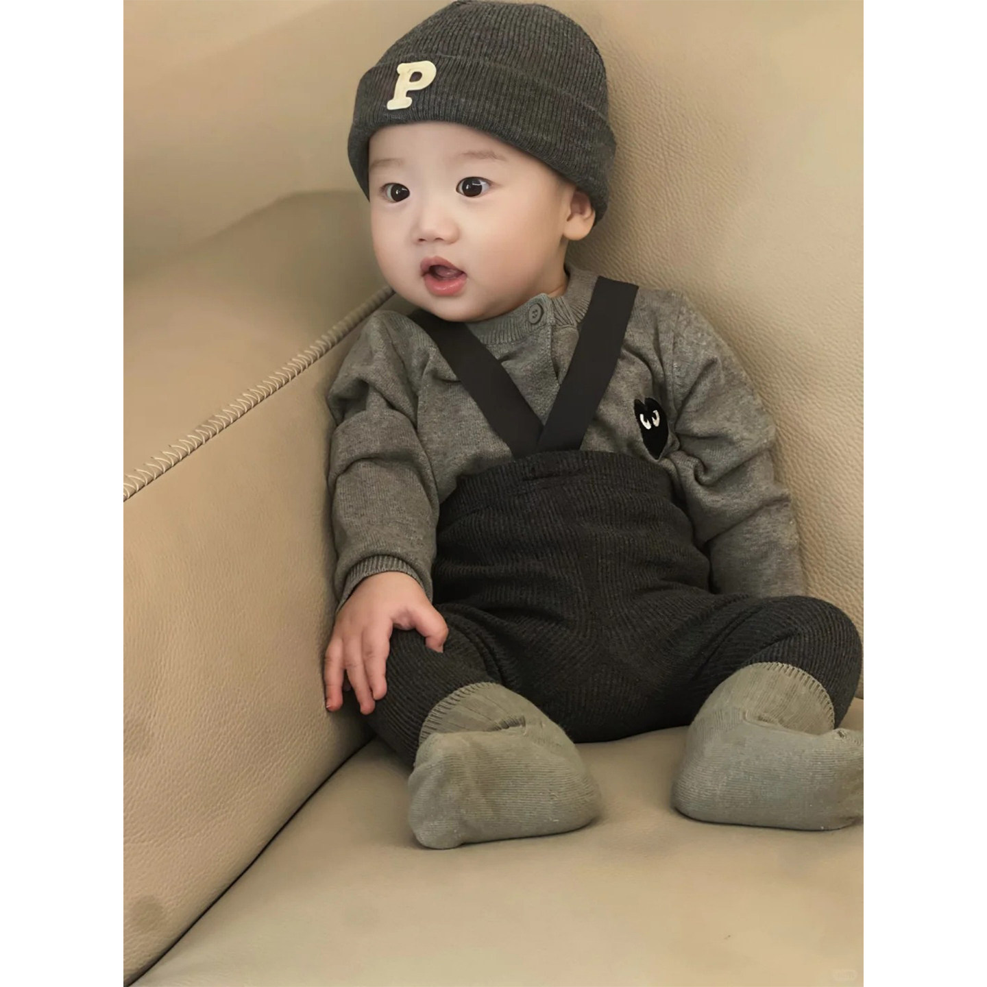 📚 宝宝秋冬新款举重裤男女宝宝韩版爱心针织开衫高腰护肚举重裤套装