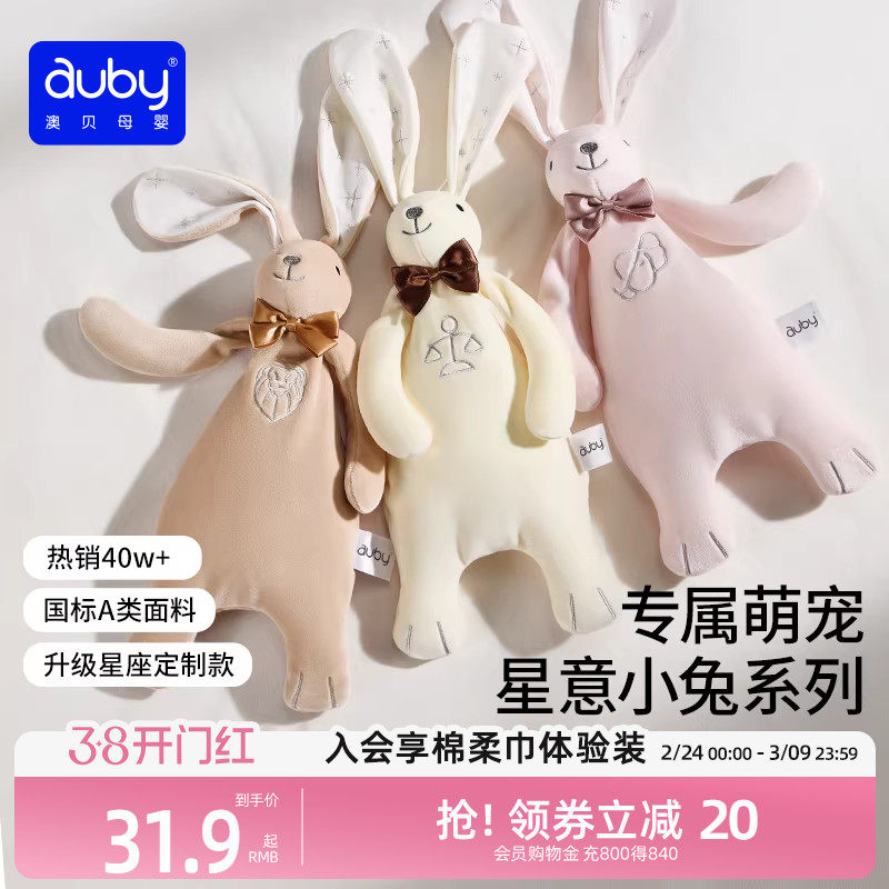 📚 澳贝星座安抚兔新生儿宝宝哄睡神器安抚玩偶阿贝贝毛绒巾婴儿玩具