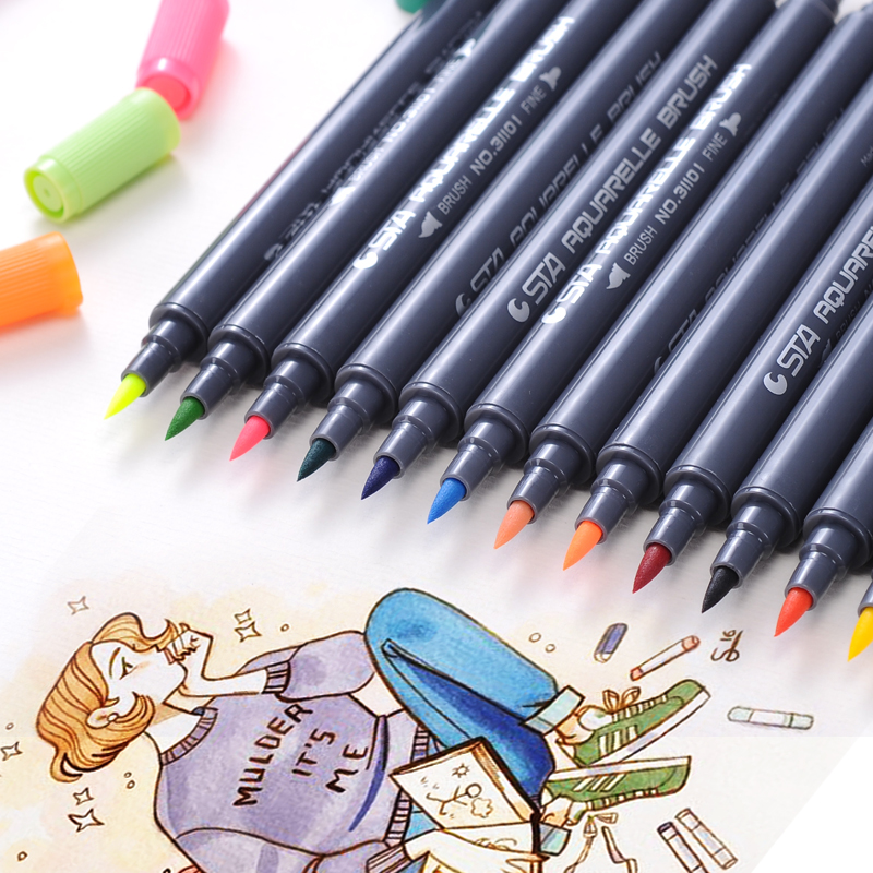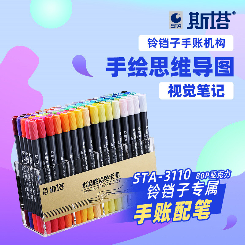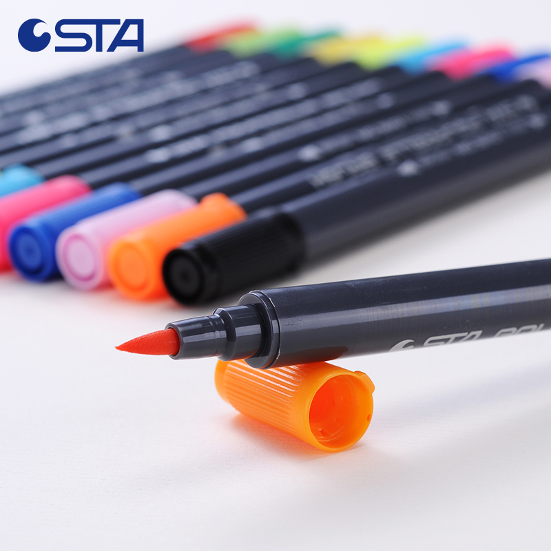 📚 STA斯塔3110双头水溶性彩色马克笔套装盒装签名笔漫画马克笔软头手绘设计学生用儿童水彩笔美术生专用色