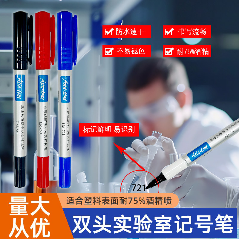 📚 亚通LM-721小双头抗酒精速干笔防酒精笔油性记号笔生物实验用