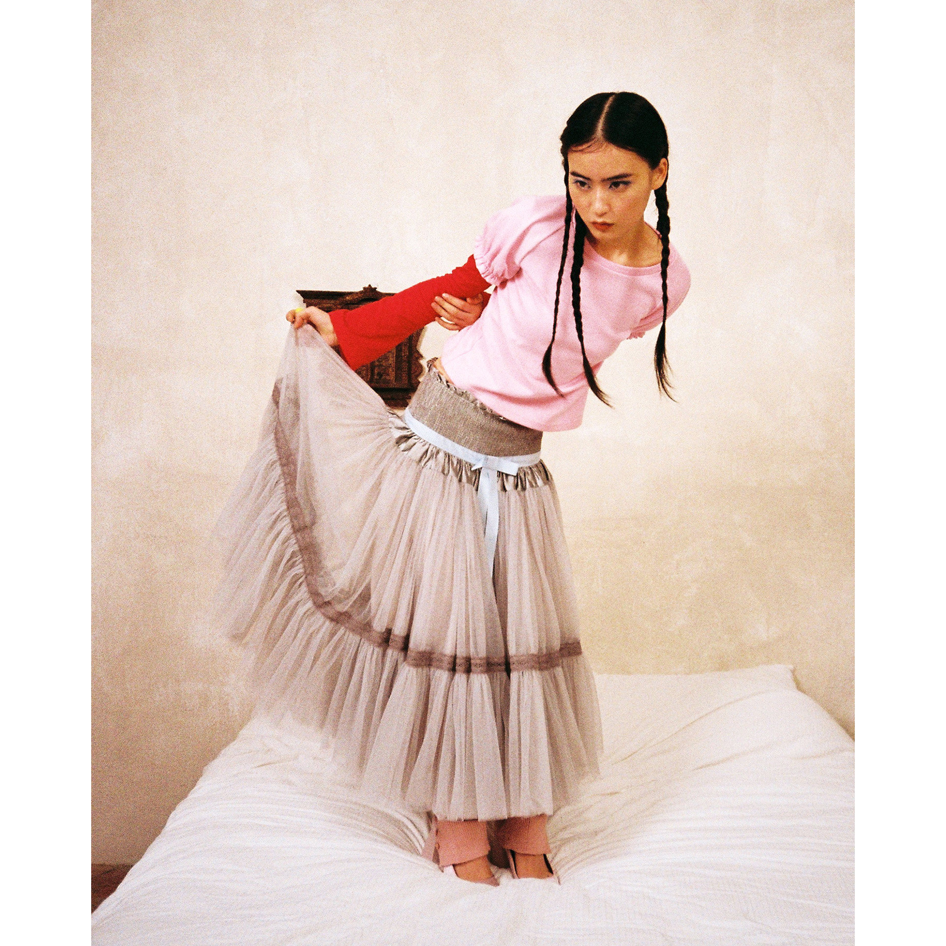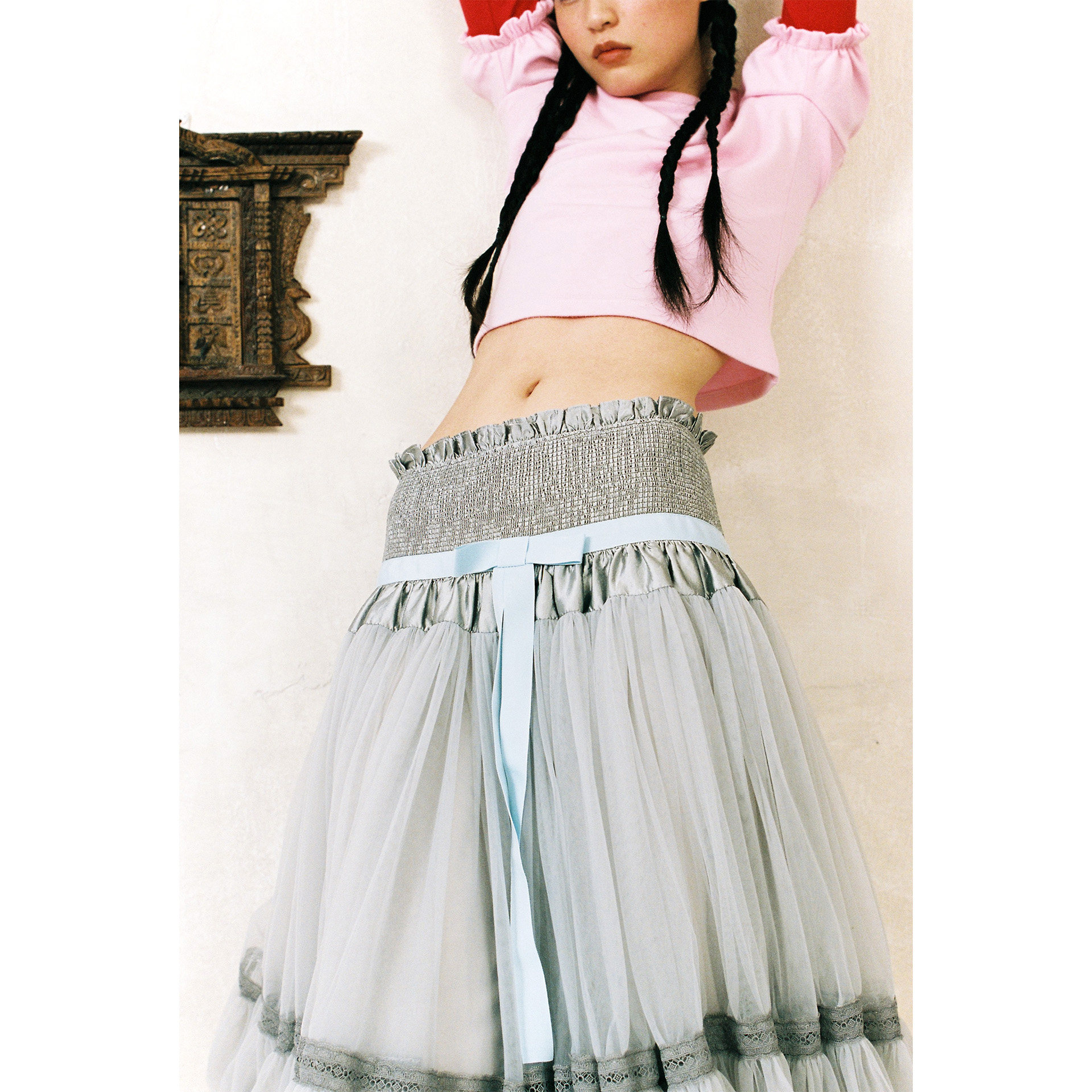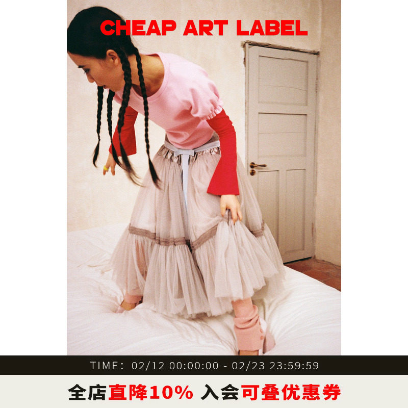 📚 cheap art label灰色蕾丝蝴蝶结大摆网纱蛋糕裙半身裙女26春新款