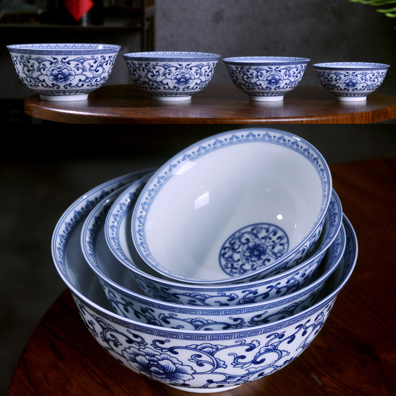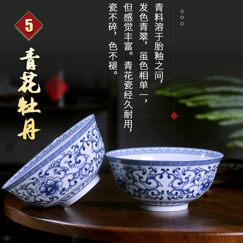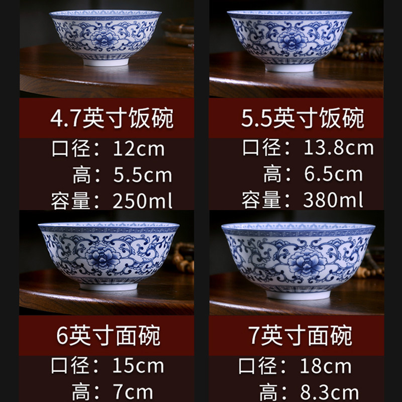 📚 正宗景德镇高温青花陶瓷碗中式家用饭碗粥碗面汤碗釉下彩餐具
