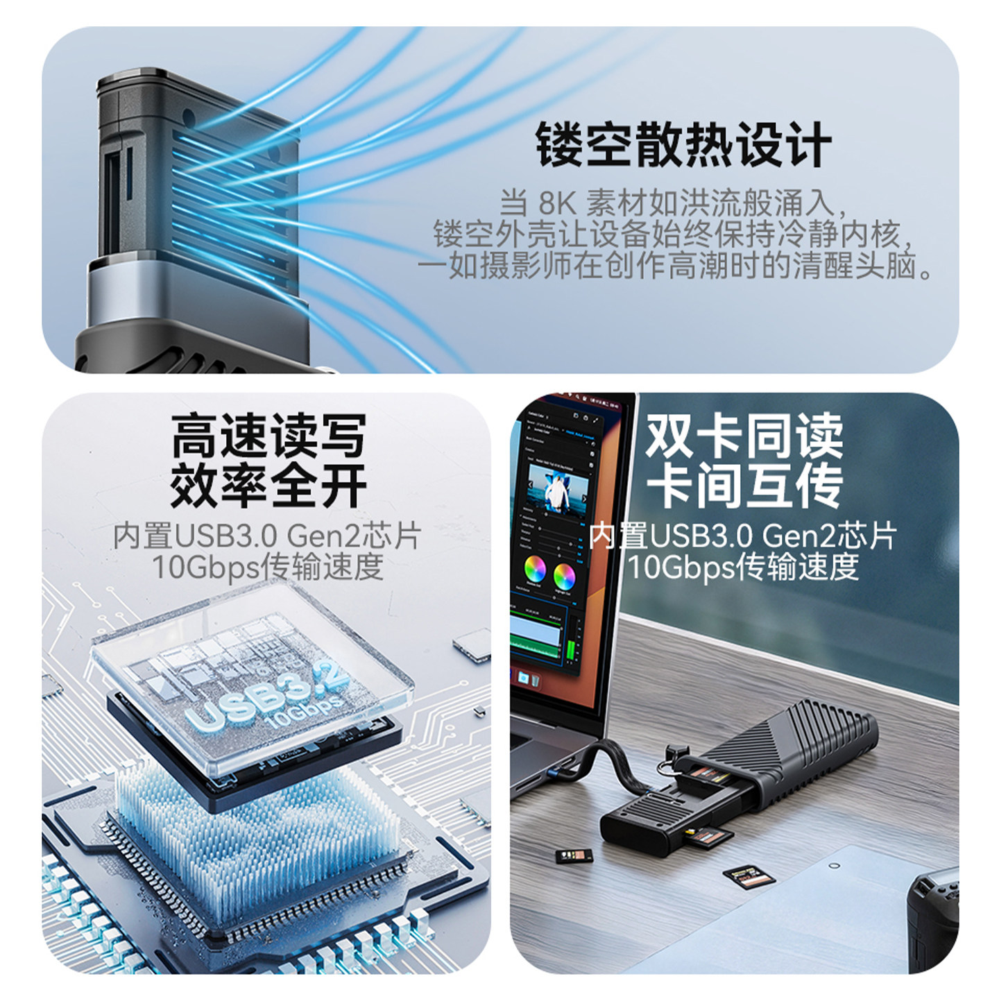 📚 CFexpress读卡器CFE卡usb3.2多功能合一Type A储存卡CFB高速闪传卡盒UHS-II SD4.0/TF内存卡收纳盒Type-C接口