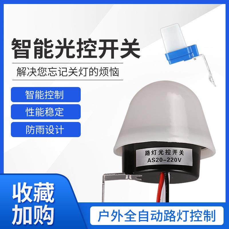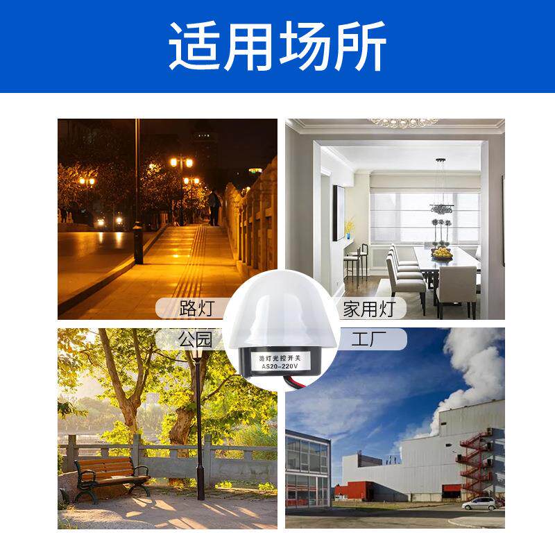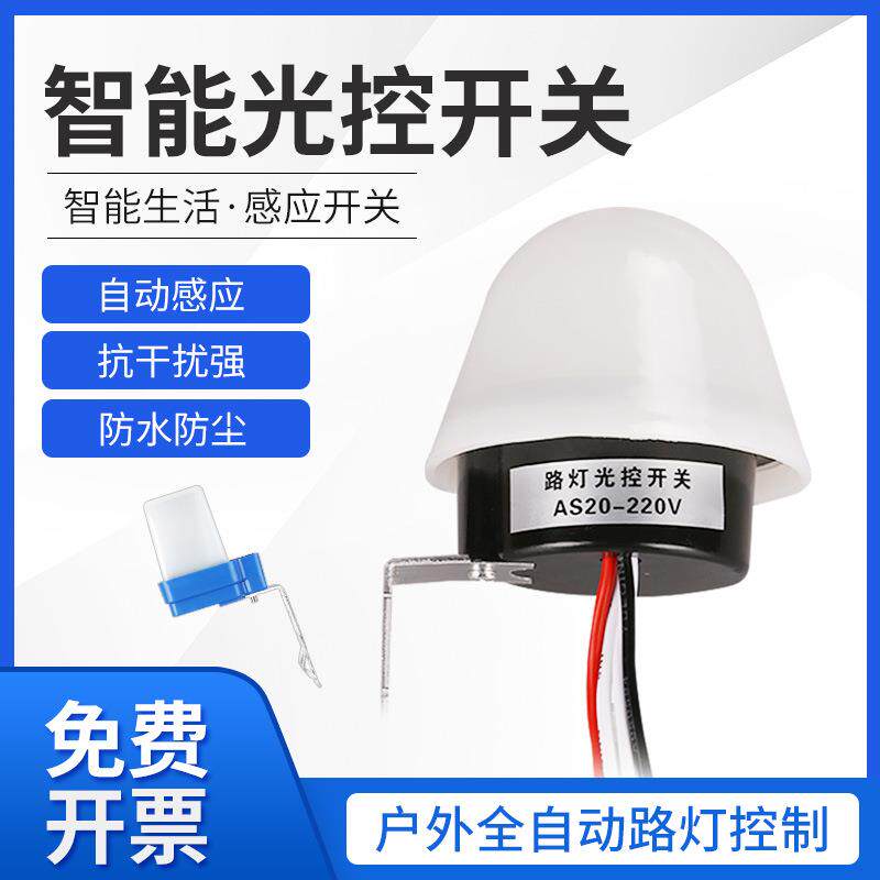 📚 光控开关220V防雨AS-20智能防雨型光感全自动延时路灯控制器4线