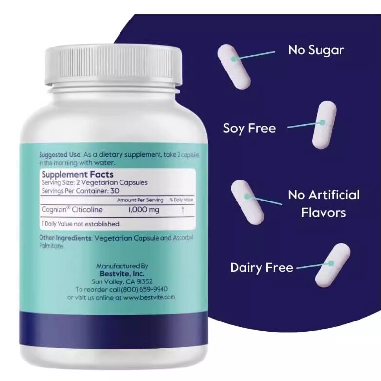 📚 美国成人脑力保健BESTVITE Cognizin 500mg Citicoline60粒