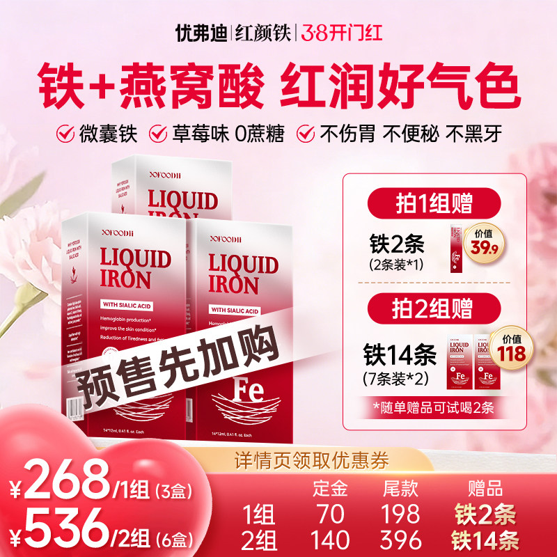 📚 【38女王节,先加购!】优弗迪红颜铁补铁剂女性孕妇哺乳补气血