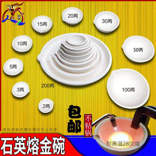 📚 石英碗坩埚炼金熔金碗套装夹子耐高温烧金碗金银黄金熔炼打金工具
