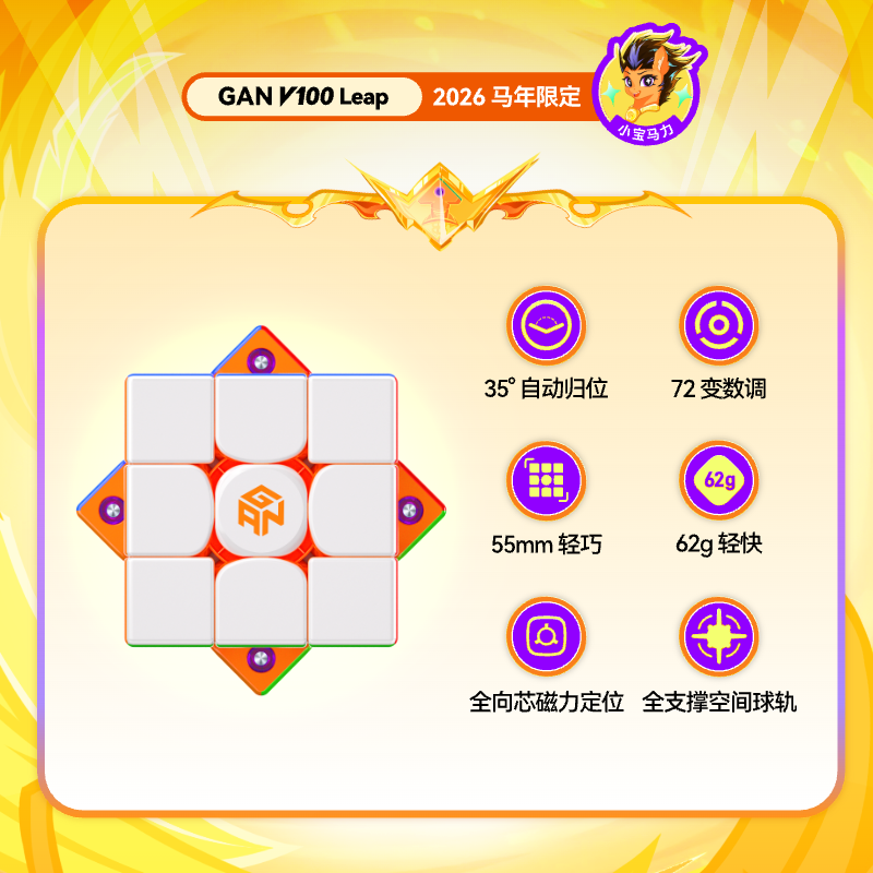 📚 GAN V100马年限定磁悬浮磁力魔方三阶专业比赛专用玩具宝可梦耿鬼